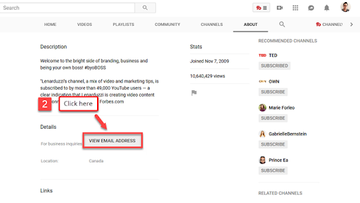 How To Find Out Someone S Email Address On Youtube Channel 2017 Youtube